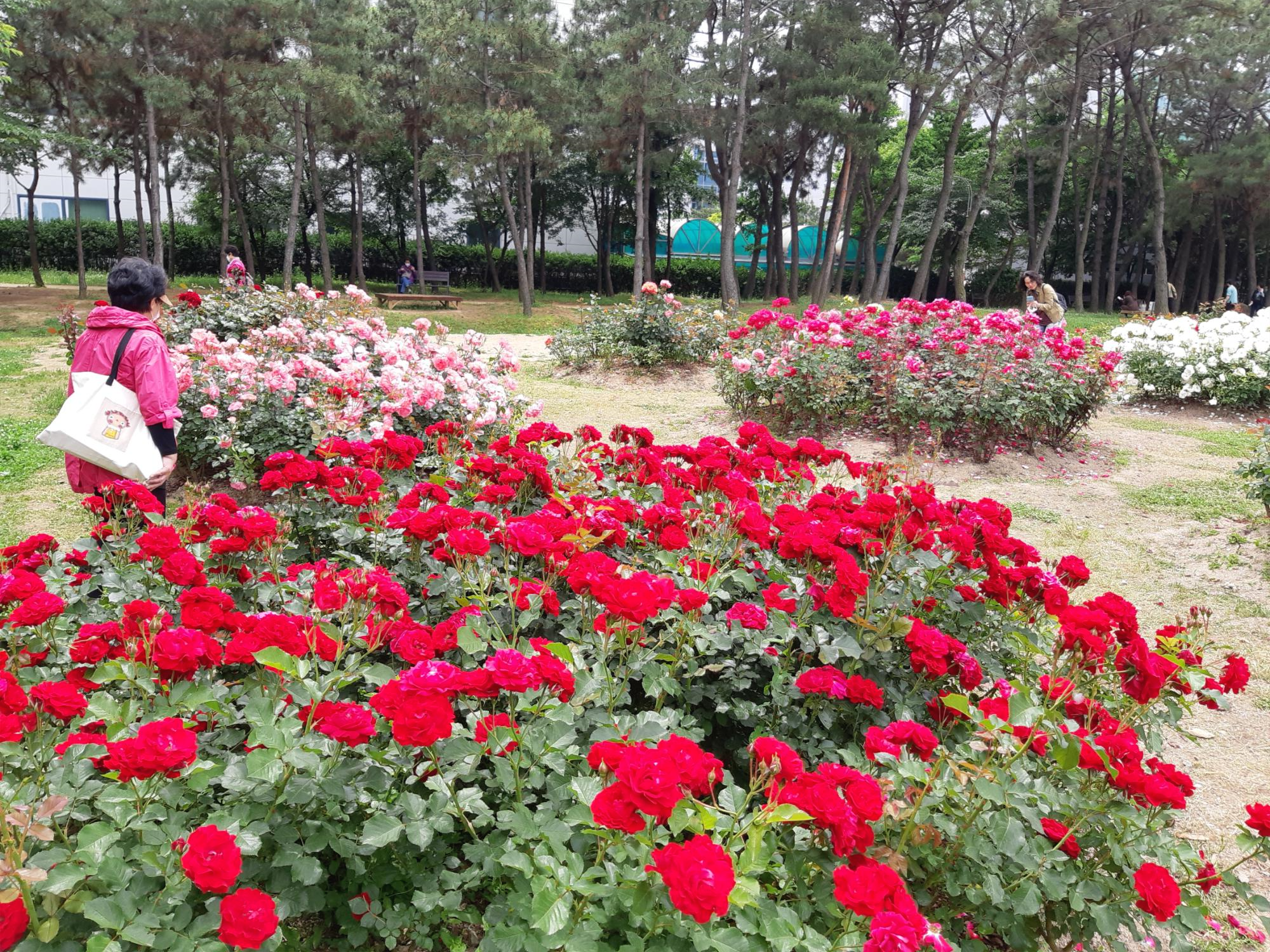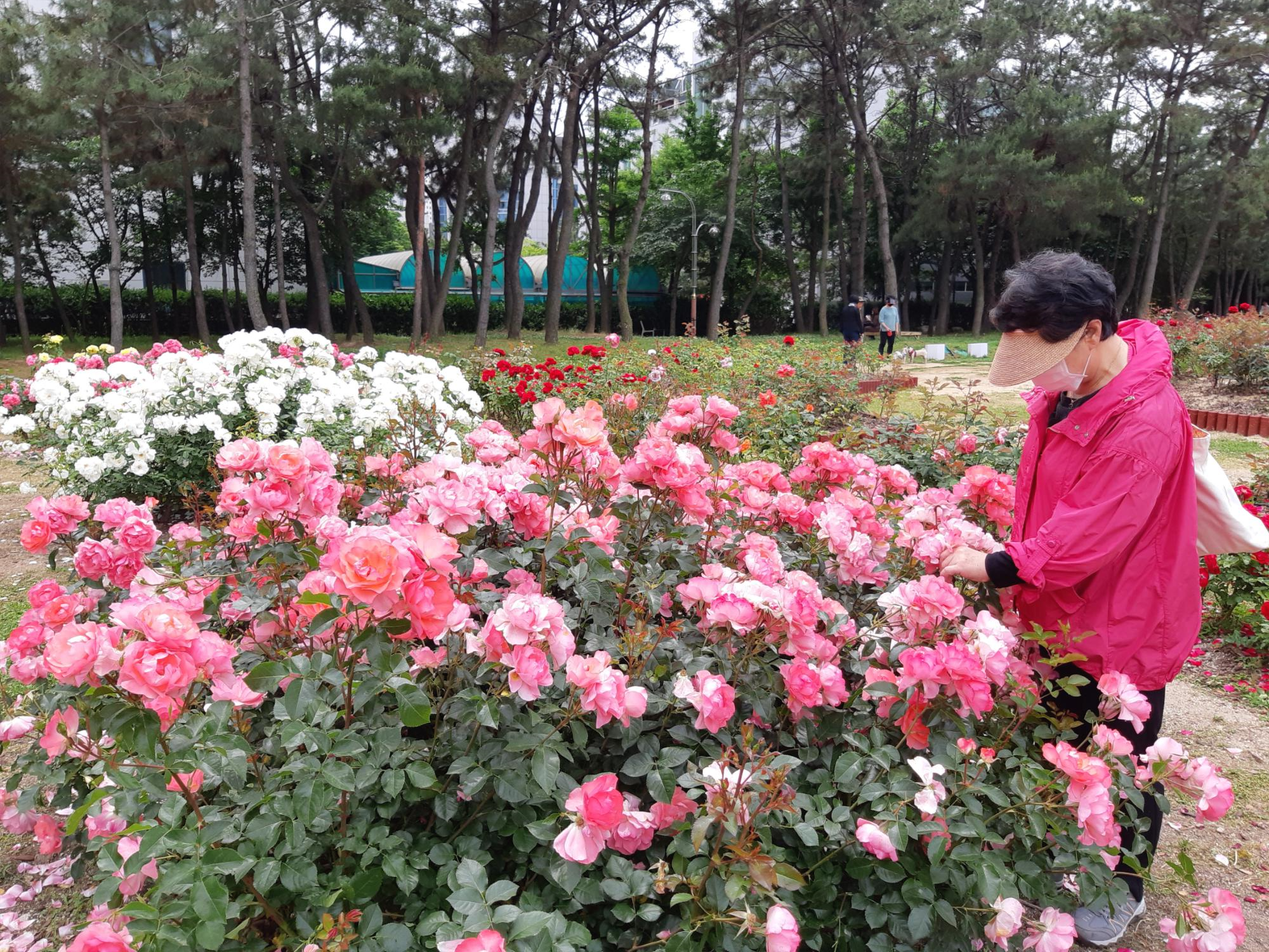 50여종의 장미꽃이 활짝 피었으나 금번 코로나 사태로 인해